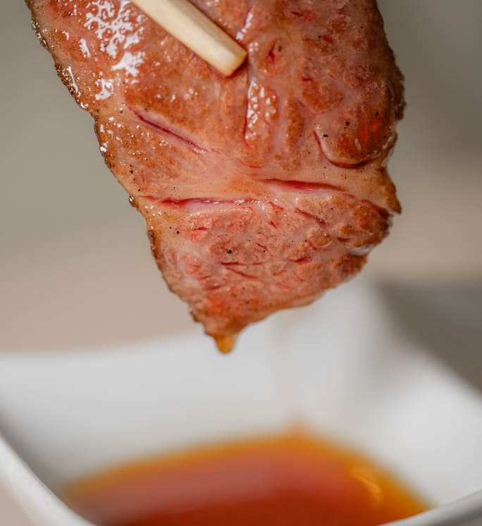 さらに、当店では赤身肉の質の高さを引き立てるため味付けしておりません。